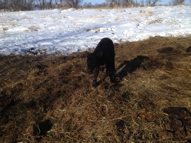 When I returned to the farm the heifer had her calf on her own so we didn't have to pull it. The baby calves were so cold because the temperature was a whopping TWO degrees out. You can see the steam coming off the wet baby calves when it is this cold. Both of these new babies were born to first calf heifers {meaning they have never had a calf}. First calf heifers can be kind of stupid because this is a new thing for them and they are not sure what to do {kind of like being a first time parent}. If the heifer doesn't claim the calf we end up with a bucket calf.